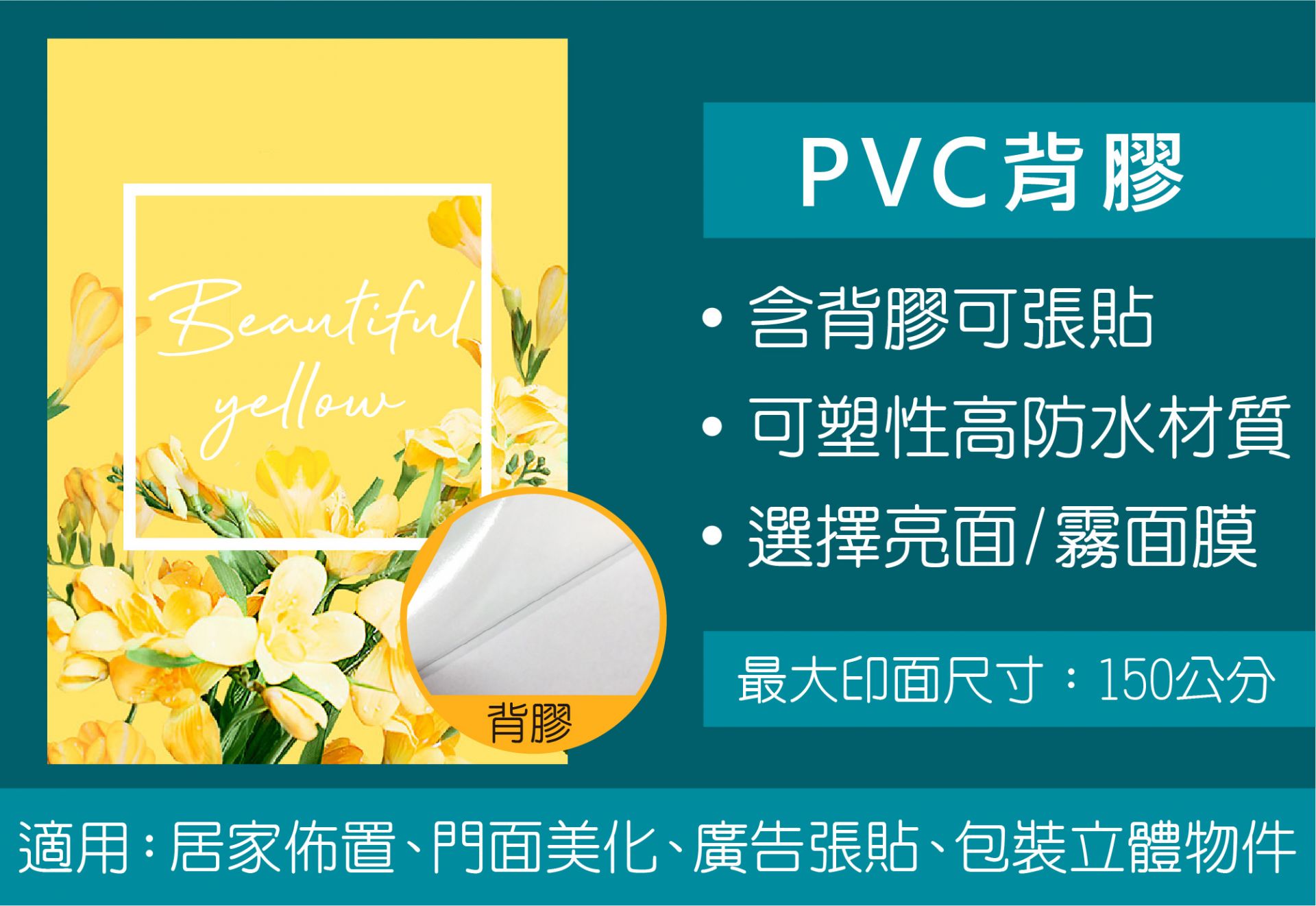 - 5.最大輸出寬度150cm,若超出寬度皆須拼接處理,長度無限制