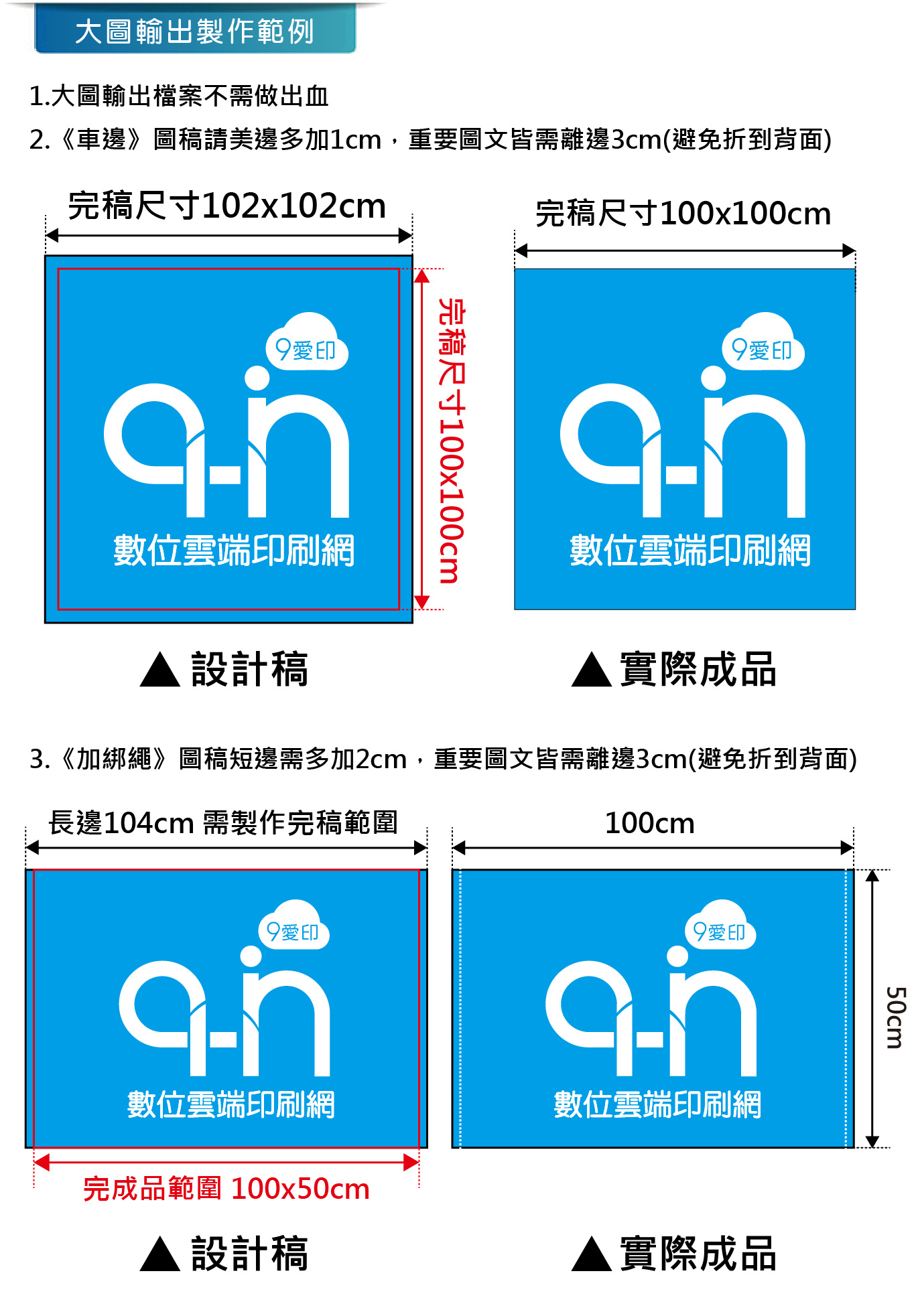 - 9.製稿輸出時,如需要縮放請備註告知"縮放倍率"及正確的完成尺寸,並自行確認可依照比例 縮放,以避免尺寸縮放後不正確。