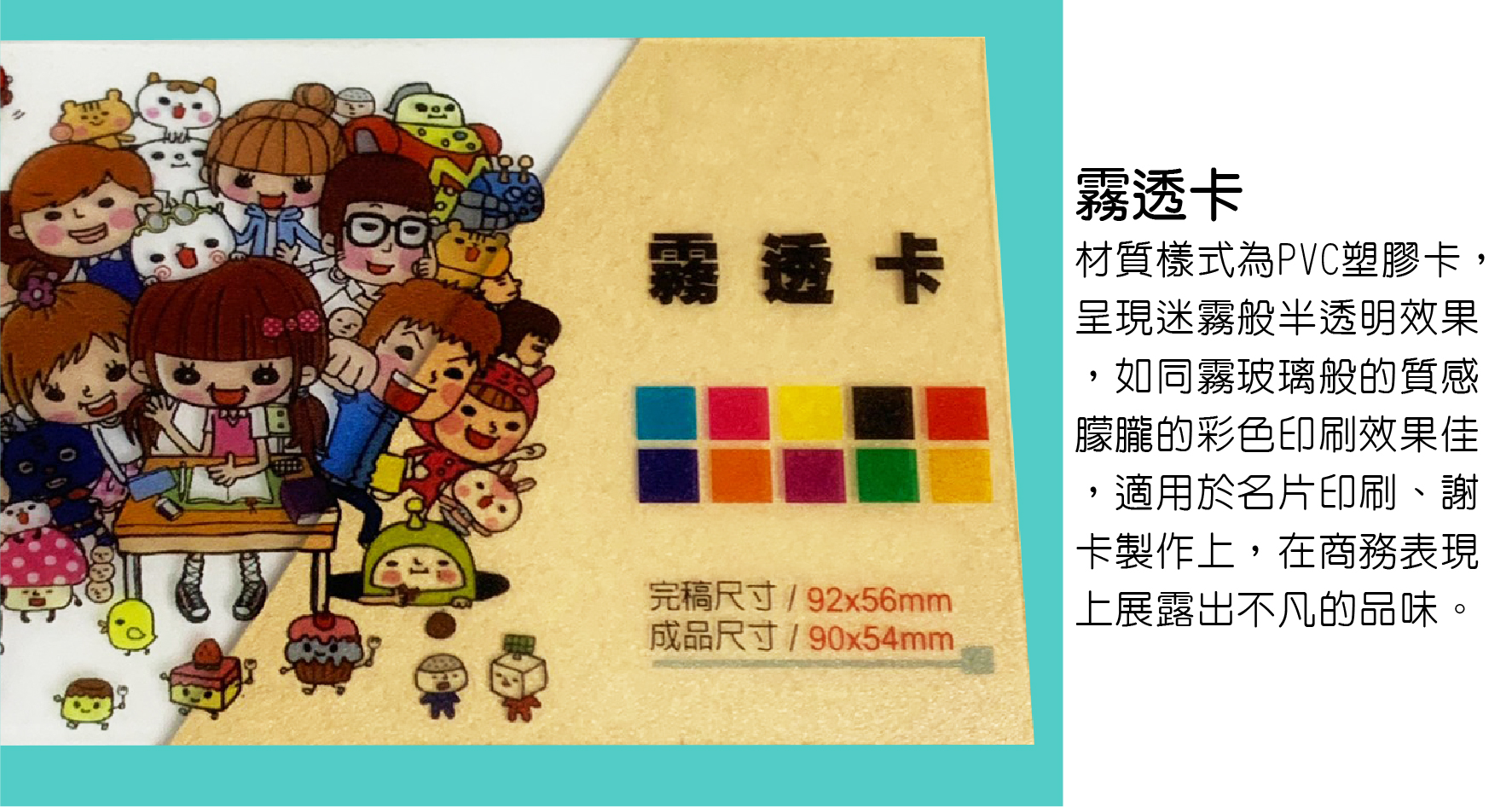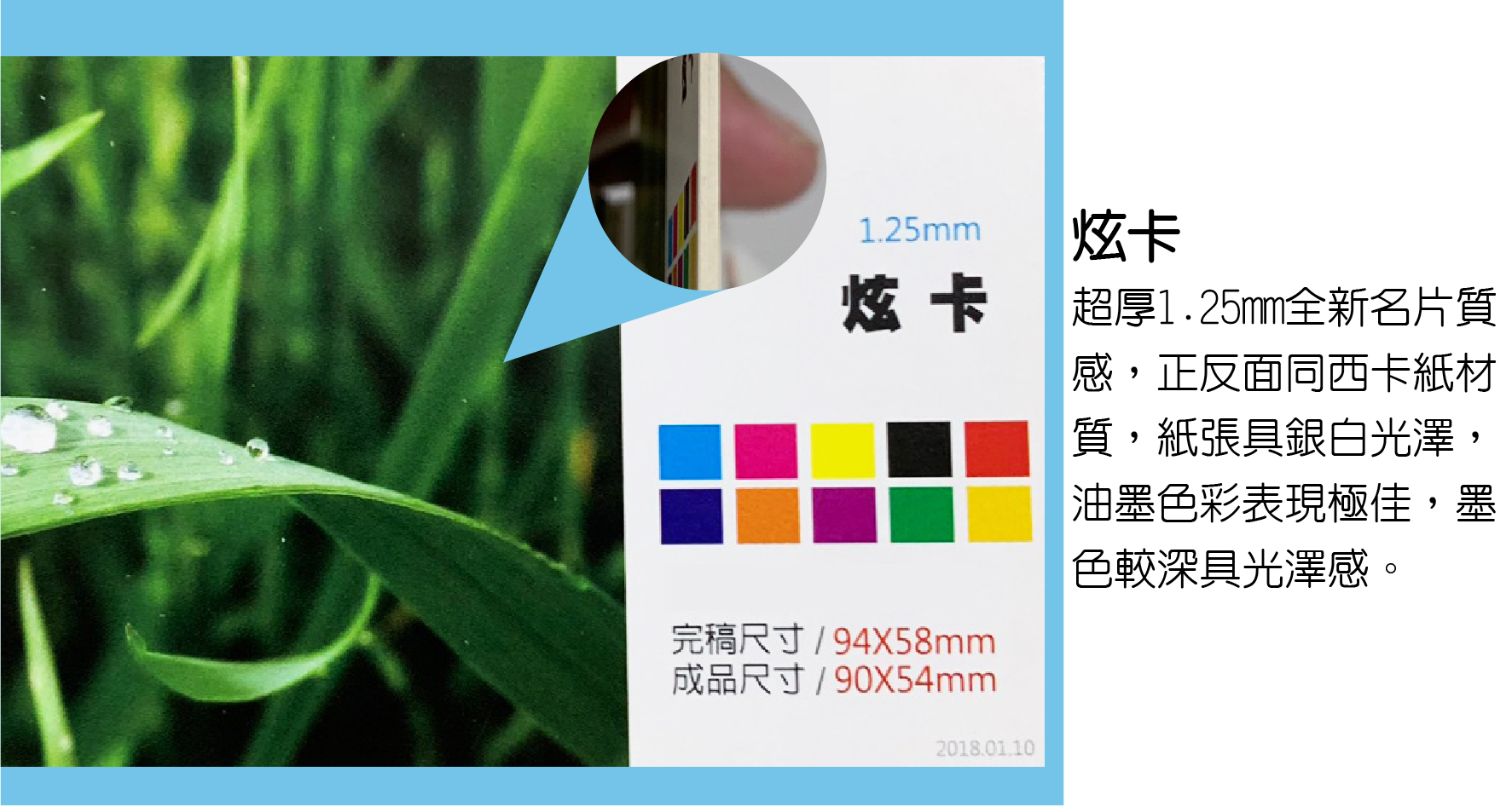 規格: 370磅黑卡燙金單面印(燙金範圍80X40MM/名片90X54MM) 370磅黑卡燙金雙面印(燙金範圍80X40MM/90X54MM) 爵士紙250磅單面印(90X54MM) 爵士紙250磅雙面印(90X54MM) 磨砂卡250磅單面印(90X54MM) 磨砂卡250磅雙面印(90X54MM) 絲絨卡250磅單面印(90X54MM) 絲絨卡250磅雙面印(90X54MM) 絲絨卡局部單面上光250磅單面印(90X54MM) 絲絨卡局部單面上光250磅雙面印(90X54MM) 永采紙240磅單面印(90X54MM) 永采紙240磅雙面印(90X54MM) 瑞典一級卡350磅單面印(90X54MM) 瑞典一級卡350磅雙面印(90X54MM) 炫卡單面印(厚度1.25mm/90X54MM) 炫卡雙面印(厚度1.25mm/90X54MM) 炫光紙250磅單面印(90X54MM) 炫光紙250磅雙面印(90X54MM) 細波紙250磅單面印(90X54MM) 細波紙250磅單面印(90X54MM) 冷燙立體彩鑽350磅單面印(90X54MM) 冷燙立體彩鑽350磅雙面印(90X54MM) 棉絮紙300磅單面印(90X54MM) 棉絮紙300磅雙面印(90X54MM) 奇幻紙250磅單面印(90X54MM) 奇幻紙250磅雙面印(90X54MM) 水彩紙220磅單面印(90X54MM) 水彩紙220磅雙面印(90X54MM) 印尼雲彩230磅單面印(90X54MM) 印尼雲彩230磅雙面印(90X54MM) 金綺紙310磅單面印(90X54MM) 金綺紙310磅雙面印(90X54MM) 雅紋紙220磅單面印(90X54MM) 雅紋紙220磅雙面印(90X54MM) 赤牛皮200磅單面印(90X54MM) 赤牛皮200磅雙面印(90X54MM) 木紋紙240磅單面印(90X54MM) 木紋紙240磅雙面印(90X54MM) 柳葉紙240磅單面印(90X54MM) 柳葉紙240磅雙面印(90X54MM) 刮刮樂卡250磅單面印(亮膜+刮刮銀/90X54MM) 刮刮樂卡250磅雙面印(亮膜+刮刮銀/90X54MM) 全透卡(350磅/86X54MM/備註是否圓角) 霧透卡(350磅/86X54MM/備註是否圓角) 冷燙立體彩鑽300磅單面印(90X54MM) 冷燙立體彩鑽300磅雙面印(90X54MM)